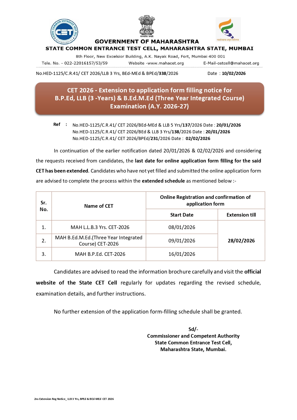 - YCMOU (B.Ed.) (2 years)