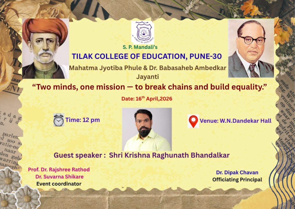 Tilak College of Education, Pune is committed to the pursuit of excellence in teacher education. The institution follows outcome-based academic practices and continuous quality assurance. Guided by its Vision and Mission, and supported by the Institutional Development Plan (IDP 2025–2030), the College prepares professionally competent, ethically grounded, and socially responsive teachers. Its academic focus responds to the evolving needs of school education and society. View More